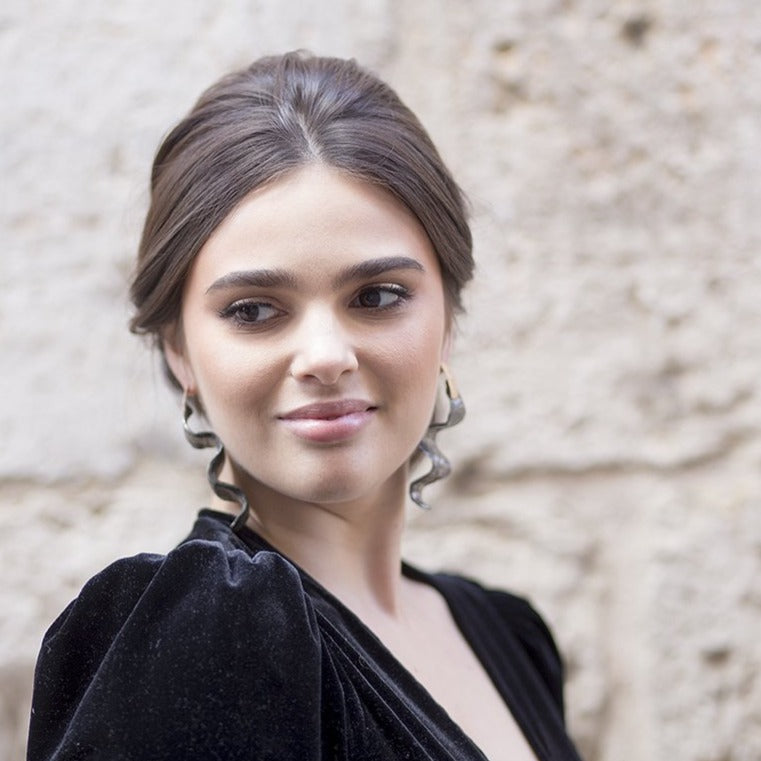 A estos pendientes largos los hicimos en Colombia, completamente a mano por Maria y Eduardo.
