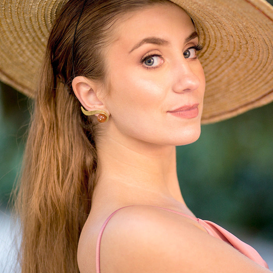 Generalmente, los aretes de oro lucen muy bien en ocasiones formales con un blazer o con un vestido elegante, pero estos aretes pequeños Viento son ideales también para un look casual de jeans y camiseta pero también, con un vestido lencero para una celebración.