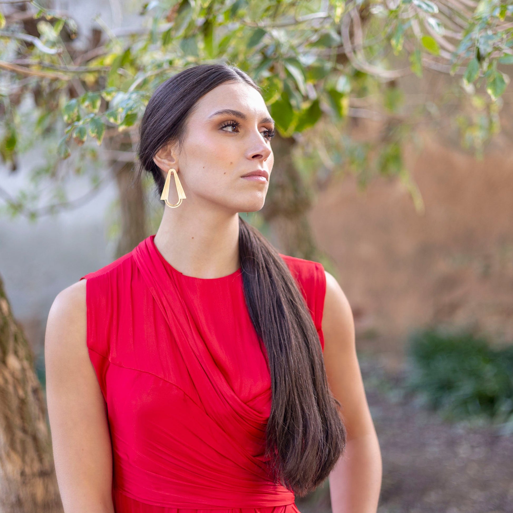 Los pendientes aura han sido elaborados en orfebrería tradicional sobre una lámina de bronce bañada en oro de 18k. Son antialérgicos, ligeros y le dan firmeza al lóbulo.