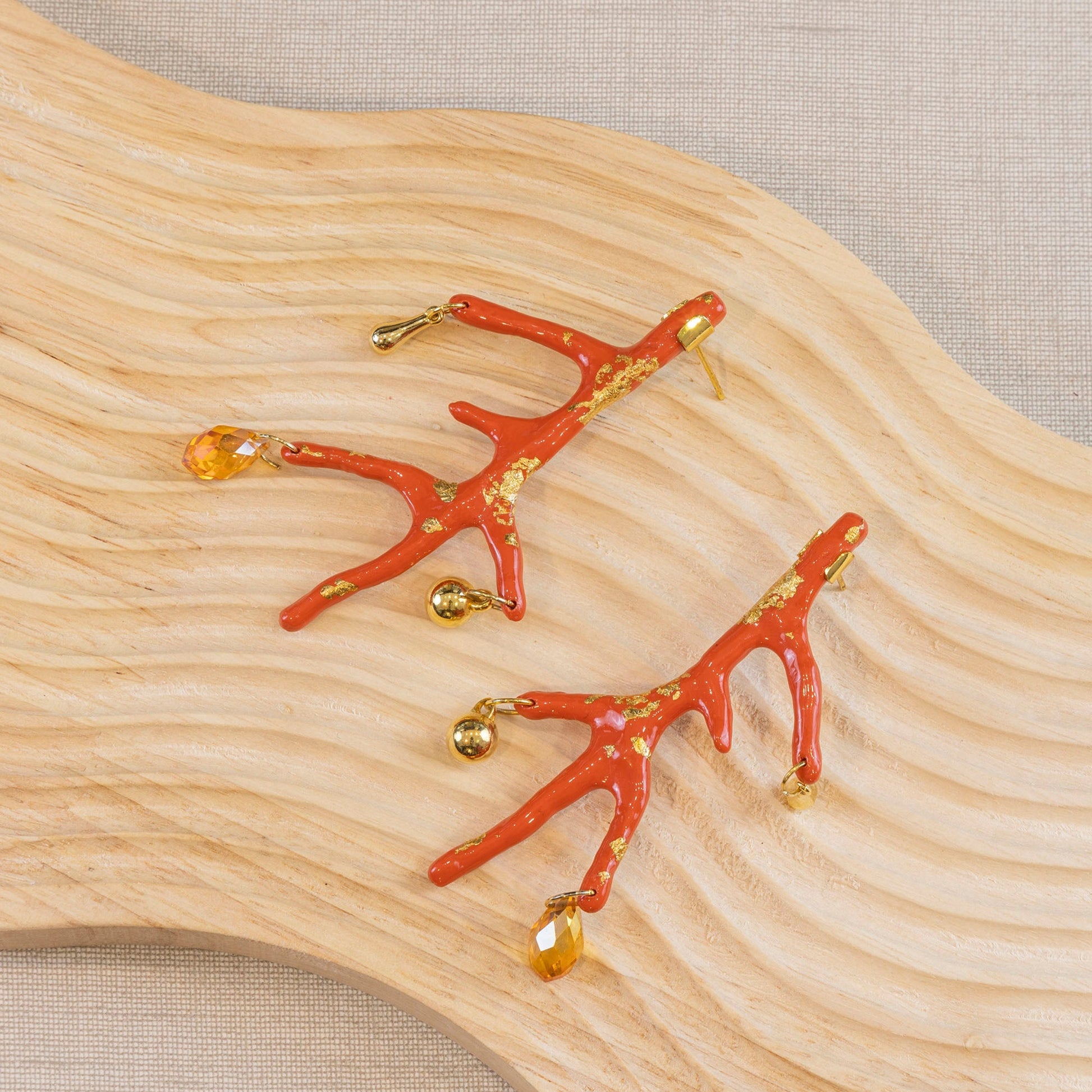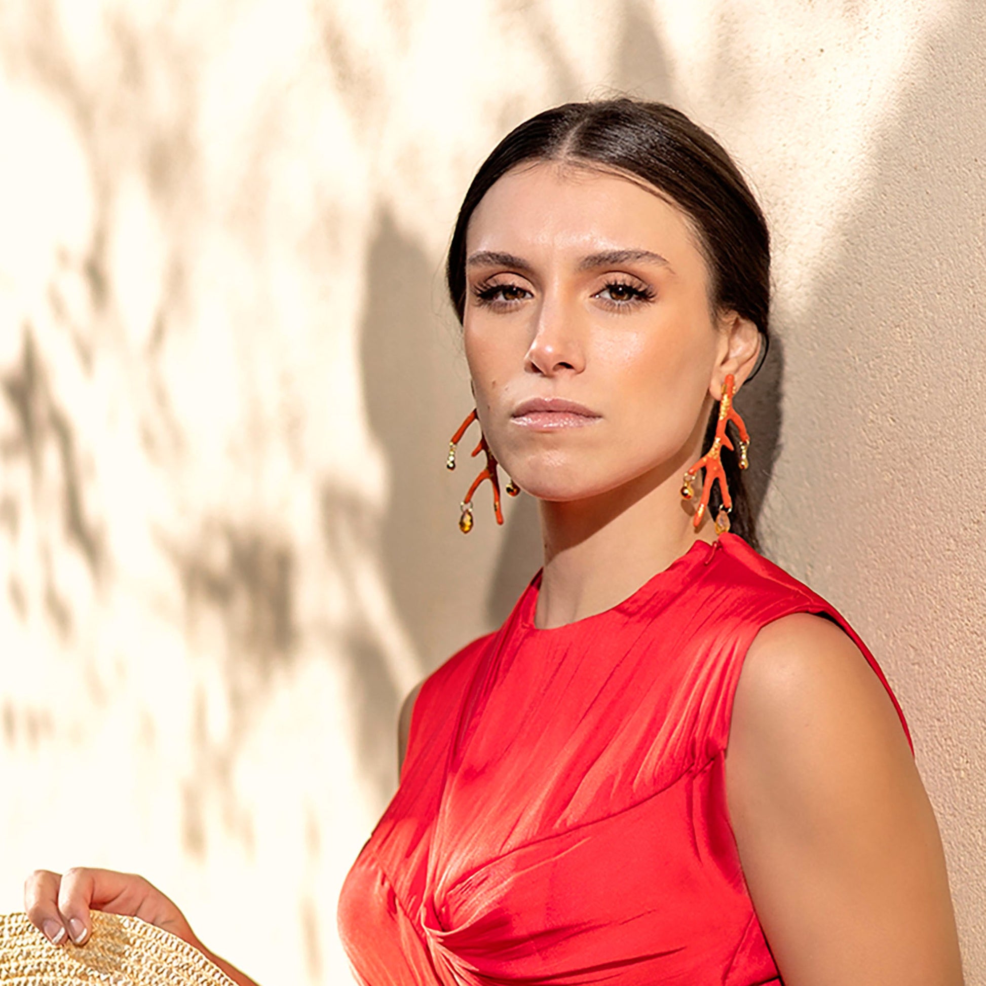 Estos pendientes medianos son ideales para combinarlos con una peineta de invitada pequeña. Su color anaranjado aporta estilo. ¡Te dejarán fascinada!