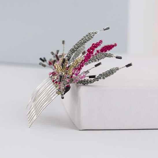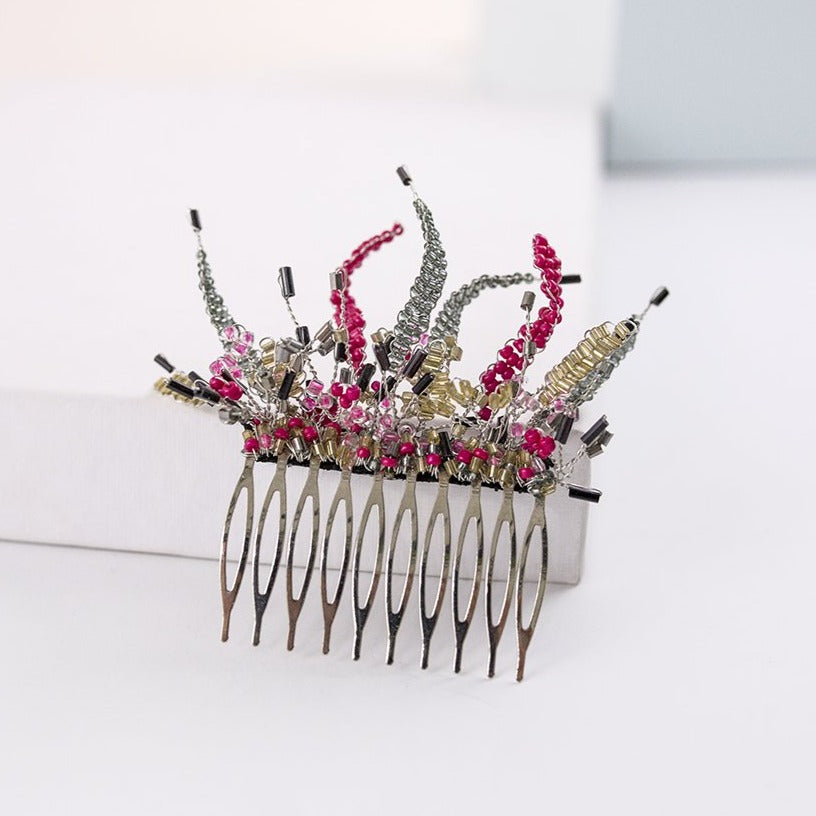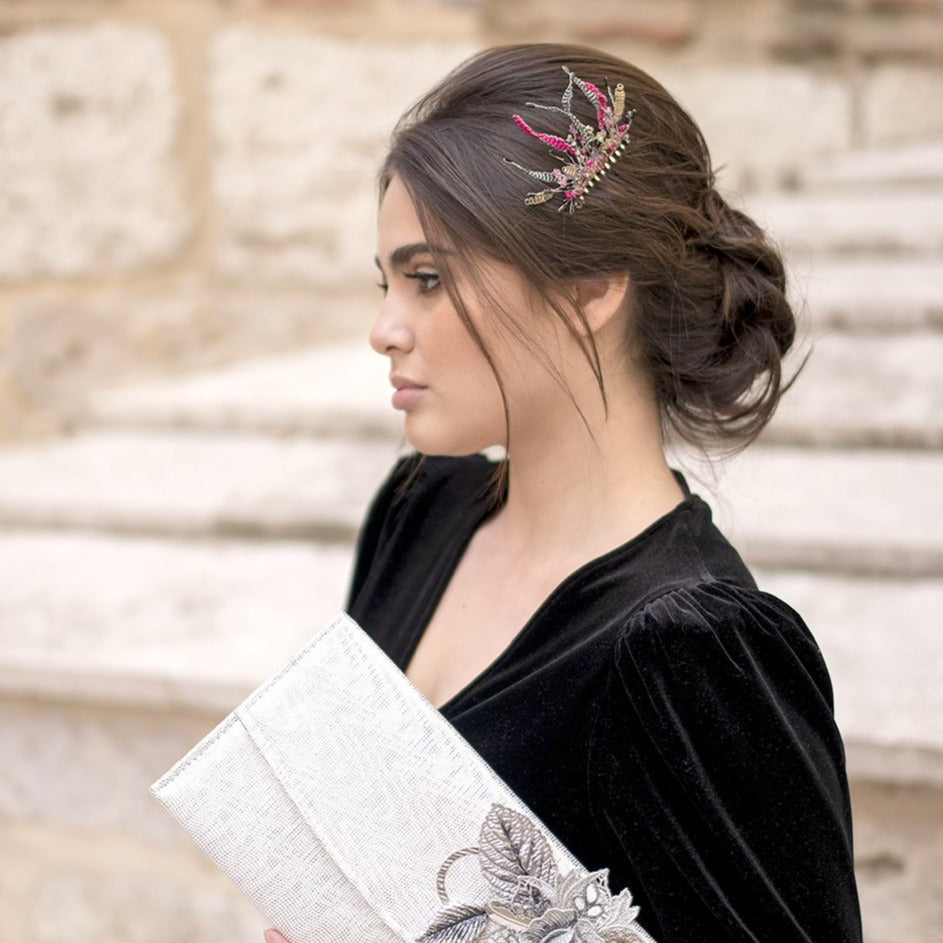 Peineta plata y fucsia