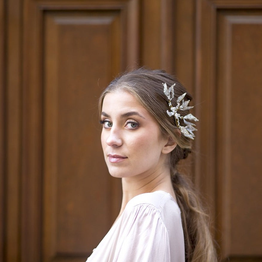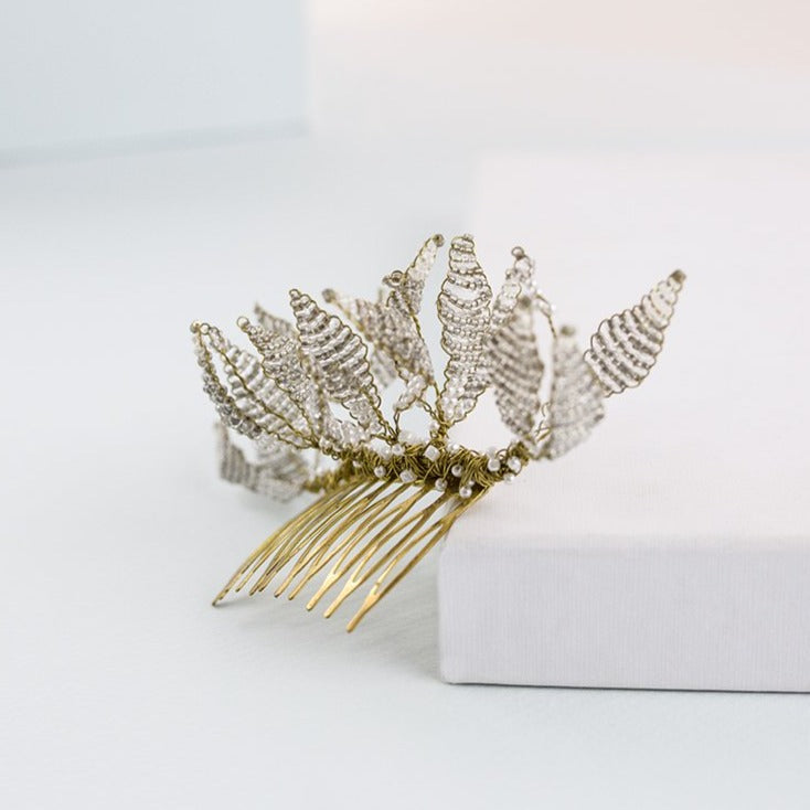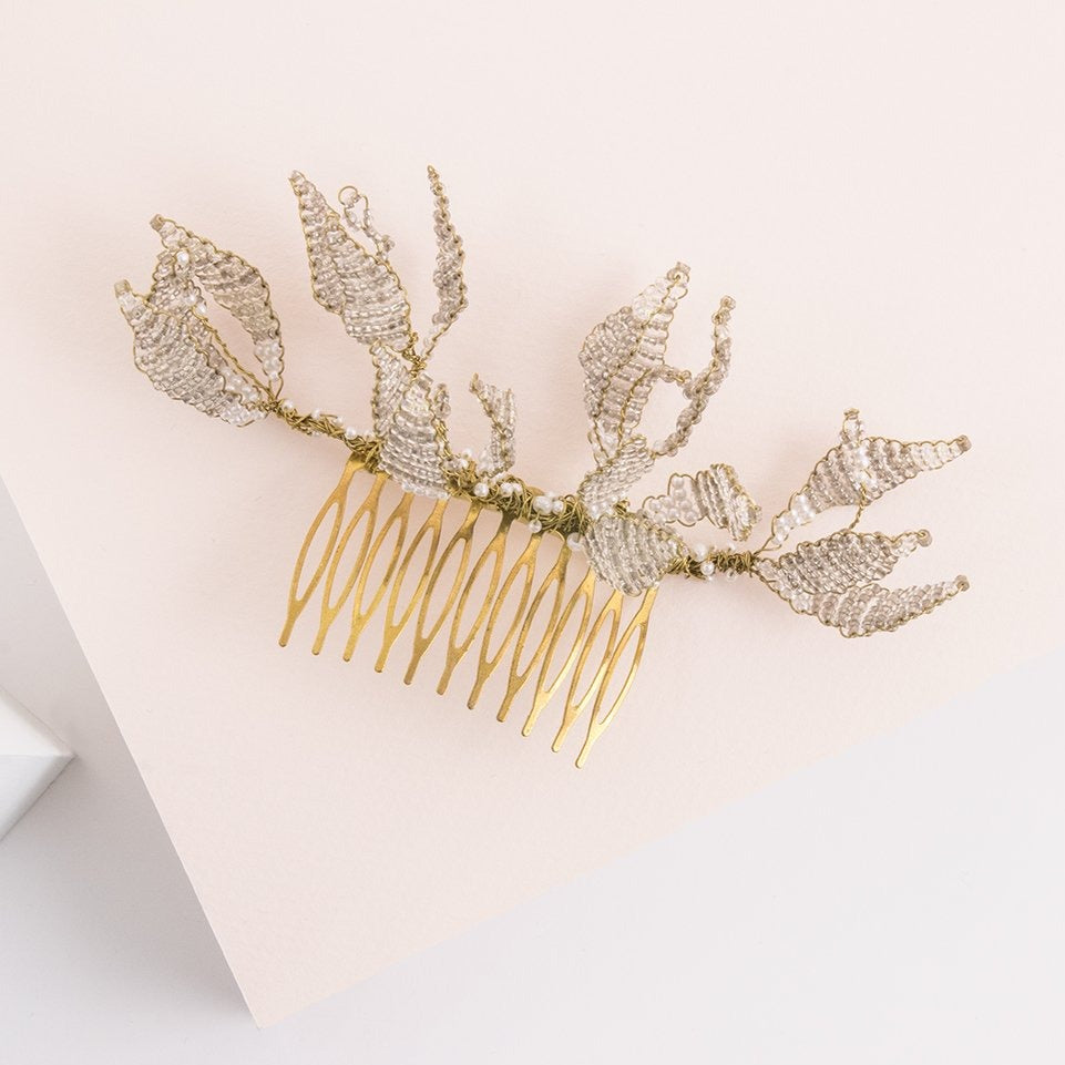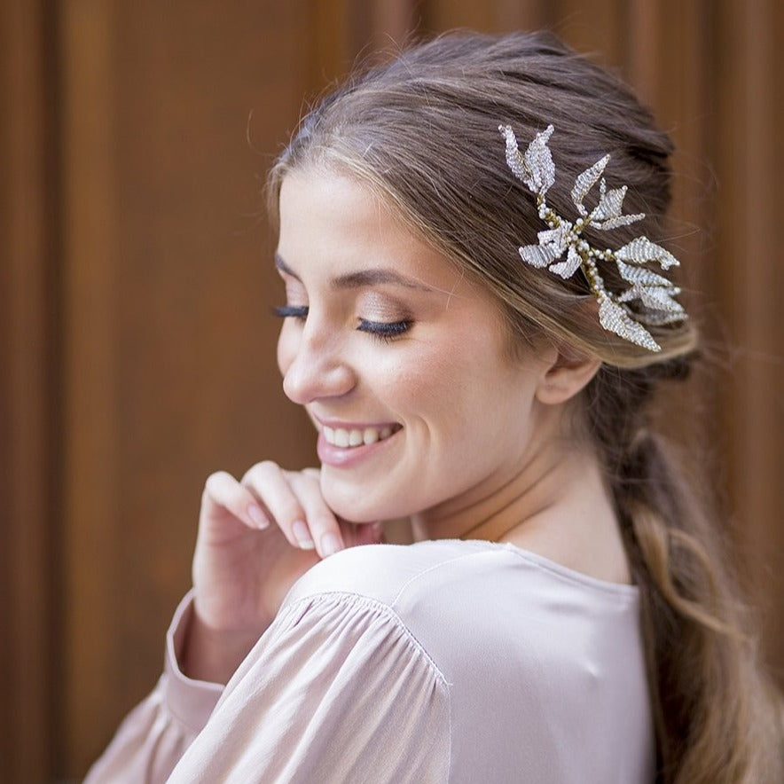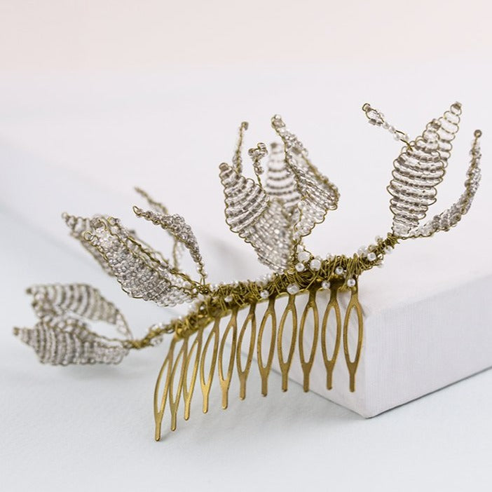 Peineta Orchid oro y blanco