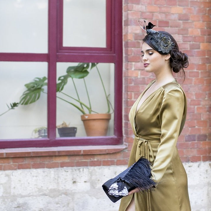 ¿Por qué la proponemos para bodas de mañana?, bueno pues porque los colores negro, plomo y dorado, además de su tamaño mediano, junto al brillo sobrio que tiene, lo hacen perfecto para cuando las chicas queremos llevar un accesorio en el pelo, que se vea tropical pero discreto. Es un además, un gran fondo de armario.