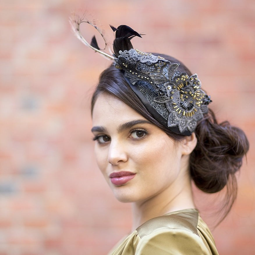 Tocado casquete Tropic Guipur negro