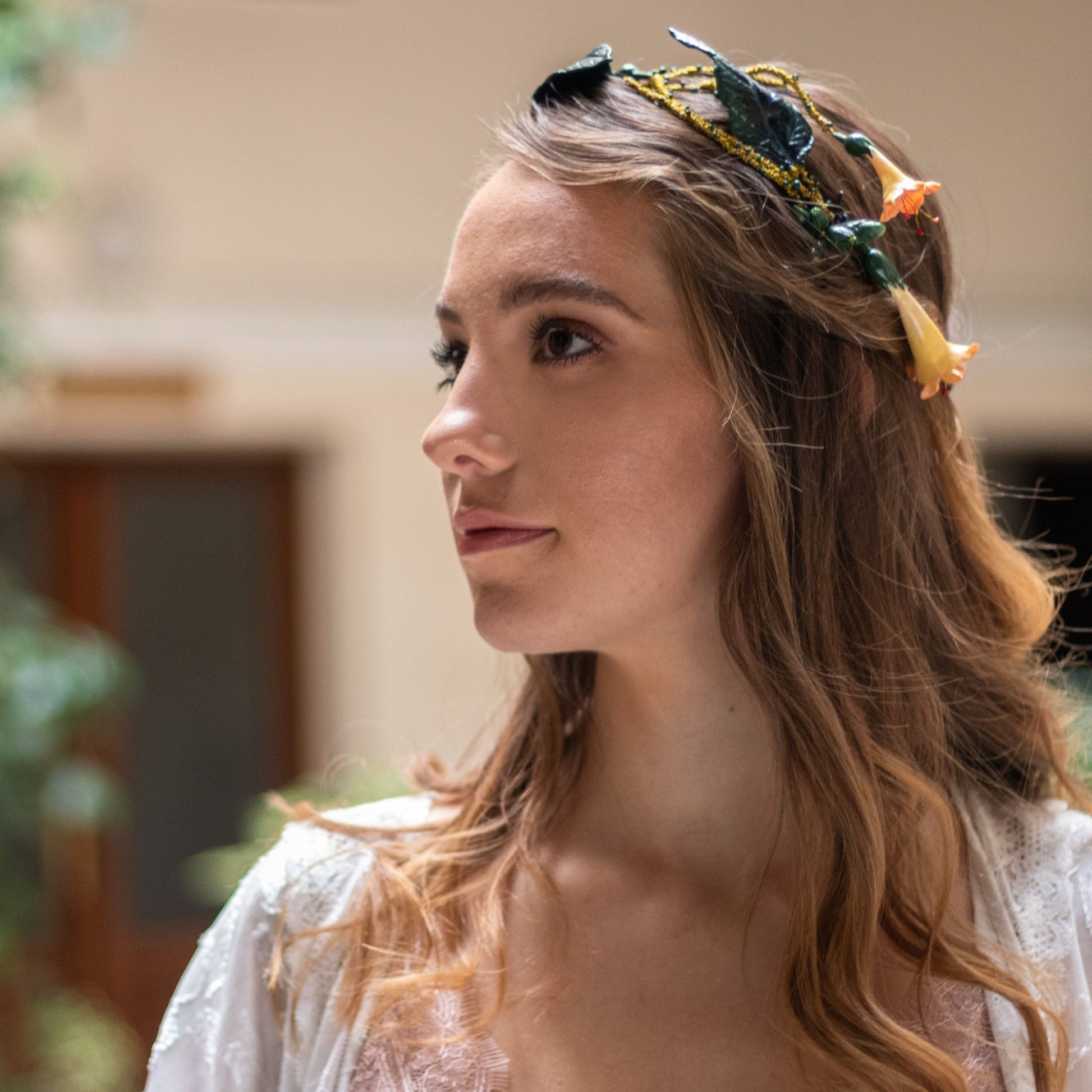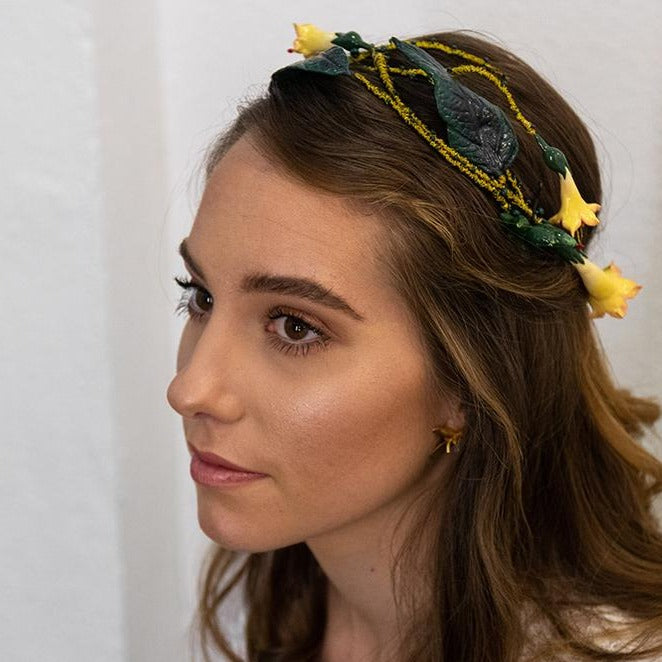 El tocado de novia que más miradas se lleva. ¡Nos enloquece el toque del metal y el color verde hoja!
